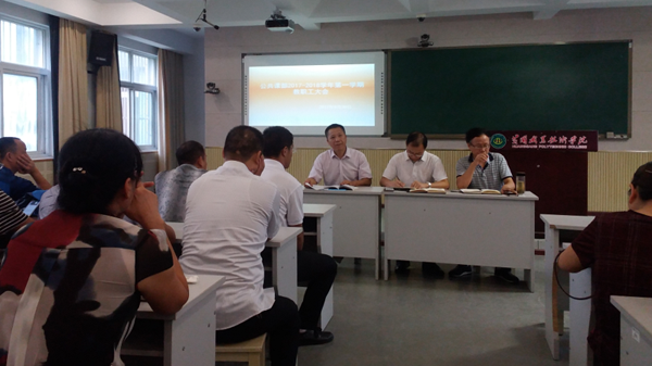 8月30日上午,公共课部在南区视录室召开2017-2018学年第一学期期初教职工大会。大会由部党总支书记刘学贵主持。全体教职员工参加了会议。
