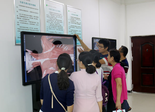 会后,与会人员陪同外聘教师熟悉了教学场所,参观了实训室,并向他们讲解了医学虚拟解剖实训室中的数字解剖系统的使用方法。
