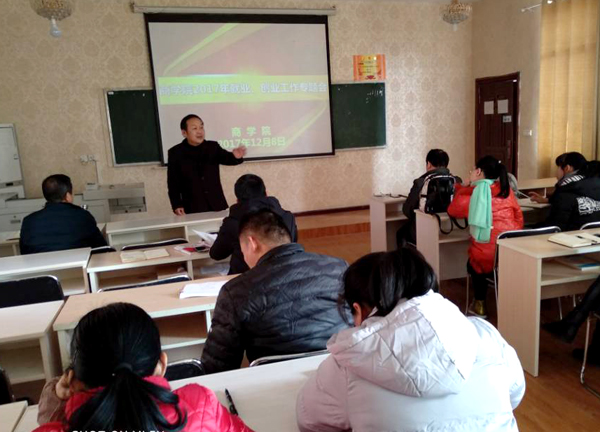 12月8日,商学院班子成员以及3位系主任,各专业主任、全体专兼职辅导员在聚贤阁303教室开展2017年就业创业工作专题会议,会议由党总支副书记汤城主持,主要汇报学院近期的就业工作进展情况和详细了解并分析商学院2017年度就业创业工作总结任务分解表。