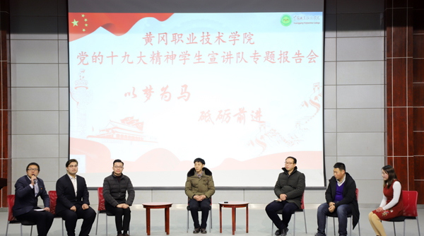 学生宣讲队从教学学院遴选的20人组成,围绕党的十九大报告中习近平新时代中国特色社会主义思想,提取了“梦想、教育、文化、青年”4个关键词作为主题。本次宣讲是通过前期深入到各教学学院基层团支部进行了8场宣讲后的成果。台上4位宣讲人通过精彩的PPT,从十九大的报告原文讲到目前大学生的现状,再讲到青年大学生如何践行十九大精神,报告内容条目清晰,观点鲜明,内容丰富。 历时一个半小时的宣讲,会场热烈,从大学生的视角阐释了对十九大精神的理解。“作为一名宣讲人,通过学习和宣讲让我们更加肯定习近平新时代中国特色社会主义思想是我们新时代的伟大思想旗帜和航标,也必将引领我们走进更加美好的明天”,来自电子信息学院的学生闫书繁说。
