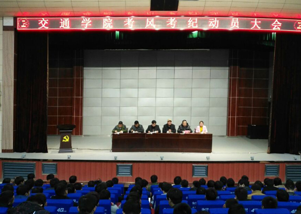 临近学期末,学校即将迎来考试周。为加强考风考纪建设,营造良好的考试氛围,12月21日晚,交通学院在学术报告厅举办2017年考风考纪动员大会。会议由交通学院党总支副书记黄忠主持,交通学院全体领导师生参加了此次活动。