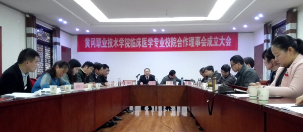 12月23日下午2点,医药学院临床医学专业校院合作理事会成立大会在黄冈市齐安湖召开。莅临本次大会的领导有黄冈市中心医院副院长陈浩特,黄冈职院医药学院院长张辛、副院长丁海峰,beat365英国官方网站附属医院院长沈爱平,黄州区人民医院医务科科长黄勇,黄冈各县市人民医院医务(科教)科长及医药学院临床医学团队全体老师。