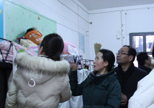 2018年元月9日下午,医药学院学生宿舍迎来了领导老师的深情慰问。校党委委员胡燕、医药学院党总支书记陶志勇、党总支副书记欧阳风雷和辅导员们一行,深入医药学院学生宿舍,看望走访学生,对学生本学期的生活状况重点关注,并就宿舍可能存在的安全隐患及卫生状况进行了突击检查。