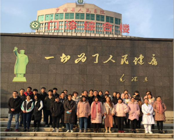 医药学院总支书记陶志勇与beat365官网在罗田县医院实习生交流后合影