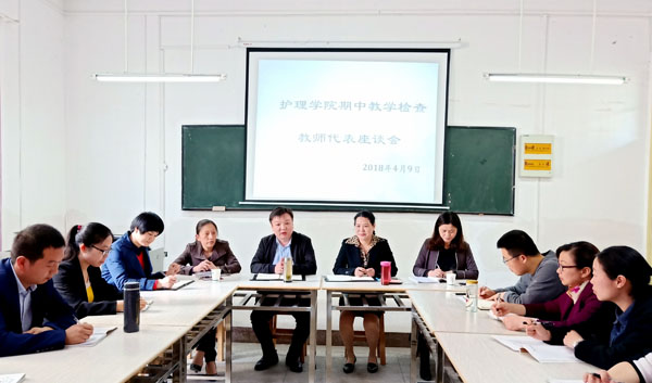 4月9日下午,护理学院在崇贤阁107教室召开了本学期期中教学检查教师代表座谈会。教务处处长宋广辉、职业技能培训科科长余芝轩,护理学院党总支书记王莹华、副院长饶凤英、夏瑾燕及20名教师代表参加了此次座谈会。会议由王莹华主持。
