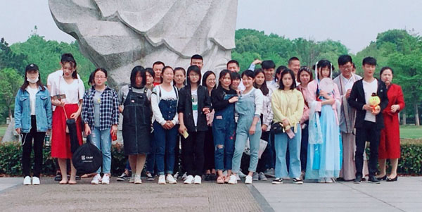 4月25日下午,beat365官网公共课部大学语文团队付景芳老师带领学校中华古诗词鉴赏班学生,在黄冈遗爱湖公园上了一次别开生面的诗词鉴赏课。