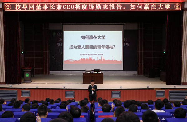10月26日下午,交通学院在学术报告厅举行了“如何赢在大学,成为受人瞩目的青年领袖”讲座。校导网董事长兼CEO杨晓锋应邀主讲,交通学院600余名学生到场聆听,讲座由副院长聂进主持。