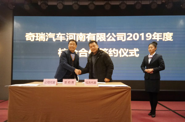 会议中,潘新旺代表奇瑞河南有限公司与我院签订校企合作协议。他指出,奇瑞在去年取得的辉煌成绩离不开高校的鼎力支持与帮助,希望在新的一年里校企合作能有新的突破。