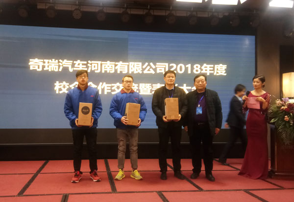 2019年1月8日,由奇瑞汽车河南有限公司举办的2018年度校企合作交流暨表彰大会在河南开封隆重举行。beat365官网交通学院副院长聂进、汽制专业主任陈健应邀参加会议。