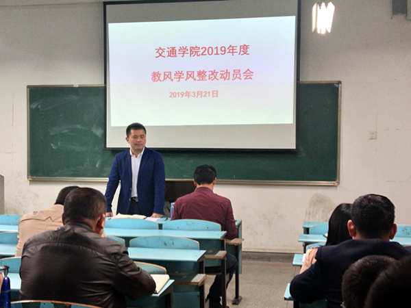 3月21日下午,交通学院在育贤阁206教室召开2019年度教风学风整改动员大会。交通学院副院长聂进、黄国祥及全体教师参加了会议。