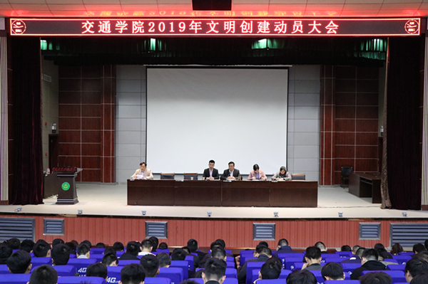 4月10日晚,交通学院在学术报告厅召开2019年文明创建动员大会。交通学院党总支副书记黄忠,全体学工人员及600余名学生参会,会议由团总支副书记黄伟主持。