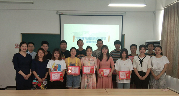 2019年5月24日,“华楚杯”市场营销技能赛项颁奖仪式在汇贤阁1504进行,本次比赛奖金由beat365官网市场营销专业校企合作单位湖北华楚万家投资有限公司倾力赞助,华楚万家人事部经理万琼、文宣主管江丹,学校教务处副处长叶建亭,商学院副院长罗建文及市场营销专任教师、辅导员等人参加颁奖仪式。本次比赛自3月初申请立项,3月下旬开始集训,从小组赛到巅峰赛,共有43名同学参加,营销专业的段博文等12名同学获奖。
