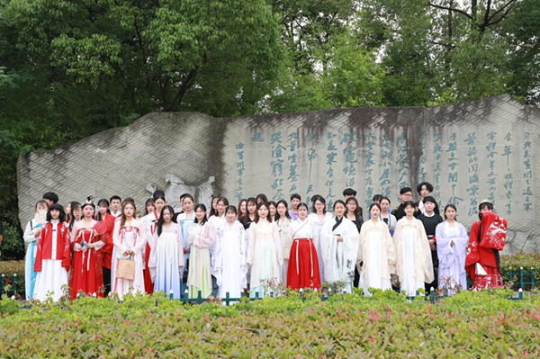 中午12:50,所有参与活动的同学身着汉服盛装出行,集体乘坐校车奔赴遗爱湖。活动由东坡词赋鉴赏、才艺展示、集体朗诵、参观苏东坡纪念馆四个部分组成,全程时长2个多小时。本次活动还得到了校团委新媒体中心大力支持,对活动进行了全程摄像与拍照。同学们在遗爱湖公园用自己的方式表达了对中国传统文化特别是汉服与苏东坡词赋的理解与感悟,大家纷纷表示能够参加这样的活动很荣幸、很开心。付景芳老师也现场填词一曲《临江仙•华服遗爱》。