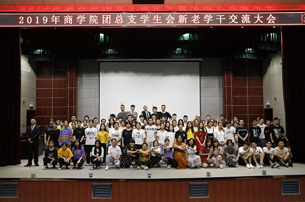7月3日晚,商学院在学术报告厅召开团总支学生会新老学干交流大会。商学院团总支学生会2017级、2018级全体学生干部参加了本次活动。商学院党总支副书记刘洋、团总支负责人占时杰、辅导员王威出席交流大会。