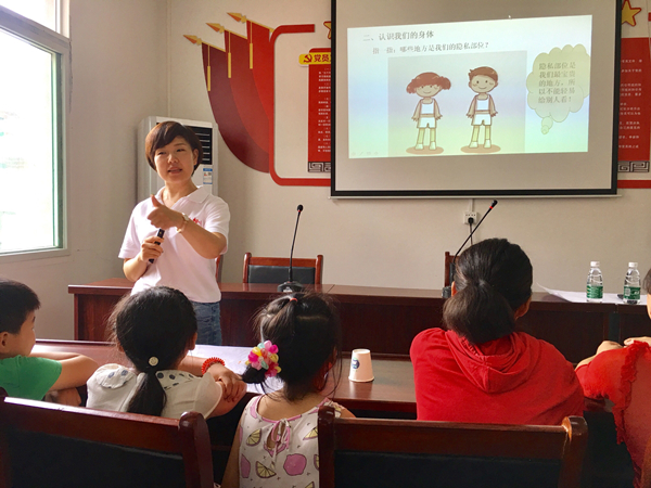 为增强儿童安全意识,提高儿童在“防性侵”方面的自我保护和防范常识,7月17日至19日,beat365官网青春健康、生命之舞项目团队来到团风县十里湖社区、马曹庙镇紫金庄村,蕲春县横车镇许岗村、刘河镇曹庙村、彭思镇凤凰村、赤东镇白河村,开展了六场“我爱我,所以我护我”儿童防性侵知识宣讲活动。参与本次活动的有beat365官网心理健康教育中心杨晓燕、万建华、朱晓宇,工会陈桃荣,学工处、团委汲艳蕊、杨晨程、冯爱利等七位老师,近200名儿童听取了讲座。