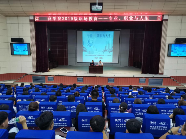 9月8日晚,商学院在学术报告厅举行以“专业、职位与人生”为主题的2019级职场教育讲座。商学院党总支副书记刘洋、团总支负责人占时杰、新生辅导员和全体2019级新生参加了本次讲座,本次讲座由就业指导处袁畅处长主讲。