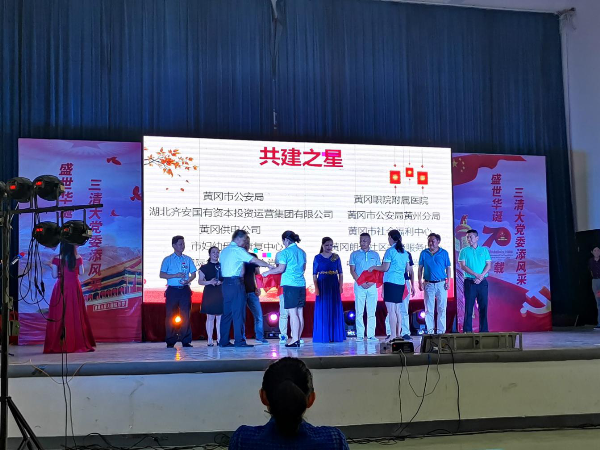 盛世华诞七十载,三清大党委添风采。9月28日下午,附属医院协助三清社区在大别山创业中心礼堂举行了第三届居民大舞台活动,附属医院直属党支部书记程朝晖、院长沈爱平同志应邀参加了活动。