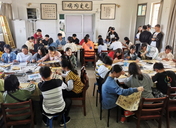 图书馆举行2019级新社员书画培训交流活动 来源:图书馆 作者:江光原 发布时间:2019-10-22 15:56:10 浏览次数: 次 【字体:小 大】 金秋十月,日丽风和。在建校70周年庆典之际,10月20日上午,图书馆在文科馆五楼社团活动室对50多名校“松风阁书画社”2019级新社员开展了书画培训交流活动。湖北省书法家协会会员、黄冈市书法家协会全委会委员、图书馆江光原老师从汉字的起源与书体流变、汉字的结构规律、写字与书法的关系、学习书法的路径和方法等方面作了深入浅出的阐述,同时,对图书馆相关电子资源作了推介。讲座结束后,进行了书法创作表演交流。学生群情高昂,意犹未尽,纷纷要求定期举办类似活动。 分享到: 【打印正文】