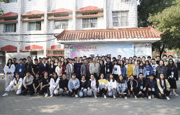 师生在大学生创业一条街合影留念