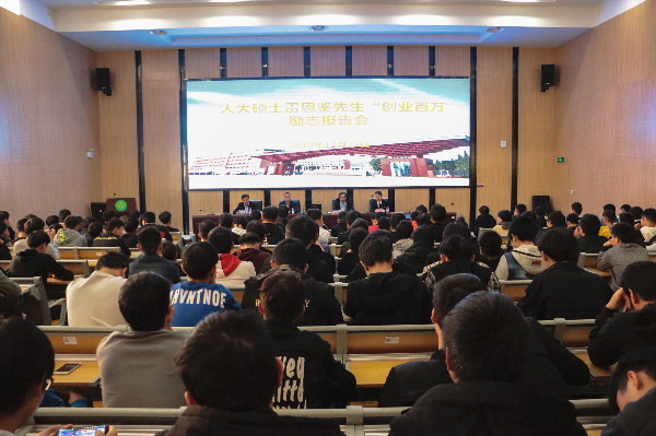 中国人民大学硕士毕业的雷恩鉴,以其自身坎坷而辉煌的经历、经验为素材,围绕“我的人生第一个创业百万;未来能力,如何准备;精准学习力的打造”与在座同学们激情分享。他以“七本书的故事、杨昌济劝学的故事”为例,指明了每一个成功的人在知识储备上的共性特点。他勉励大家:只有修学储能,行动坚韧,方可人生出彩,日后才能成为国家和社会的中流砥柱。
