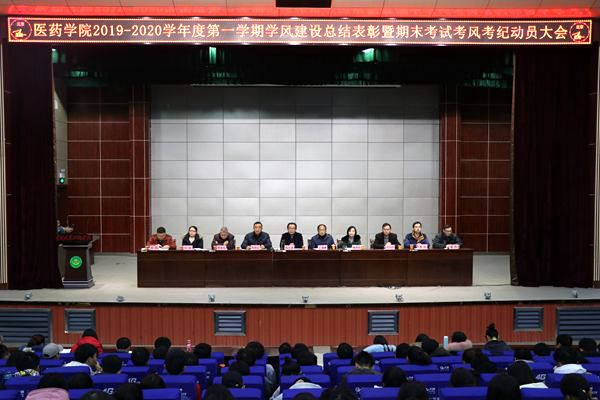 12月23日晚,医药学院在学术报告厅召开了2019-2020学年度第一学期学风建设总结表彰暨期末考试考风考纪动员大会。我院党总支书记陶志勇、院长丁海峰、党总支副书记陈胜红、副院长梅雨珍、各专业主任、团总支书记郭鹏及教师代表和学生代表共600余人参与了此次会议。会议由陶志勇主持。
