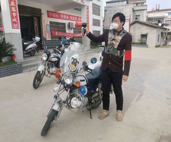 袁晨参与宣传、巡逻工作
