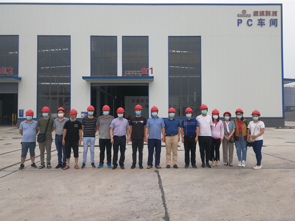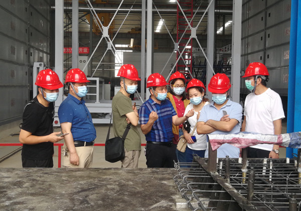 为全面落实双高建设,建设建筑装配化产教融合实训基地,促进建筑业转型升级发展,2020月5月25日,建筑学院党总支书记刘晓敏、院长夏端林、党总支副书记许文彬、副院长王健、专业主任、实训中心主任、专业教师和就业干事一行13人,赴武汉地产集团建筑产业化生产基地——湖北绿缘新型材料科技有限公司(以下简称为“湖北绿缘公司”)参观,对建筑装配化基地建设及运行情况进行了调研,湖北绿缘公司副总经理文志勇为调研团队热情、详细地介绍了PC车间生产线情况、产品优势及发展前景。