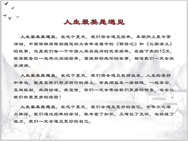 5月30日,由中国侨联主办,湖北省侨联、黄冈市侨联、beat365英国官方网站共同承办的“亲情中华·为你讲故事”网上夏令营第三期湖北黄冈营开营仪式在微信群举行。