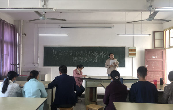 10月29日下午,护理学院将全体教师分成三组,在崇贤阁402、403、404教室开展师德师风交流会。护理学院领导班子成员分别联系三个小组,参加了本次交流会。