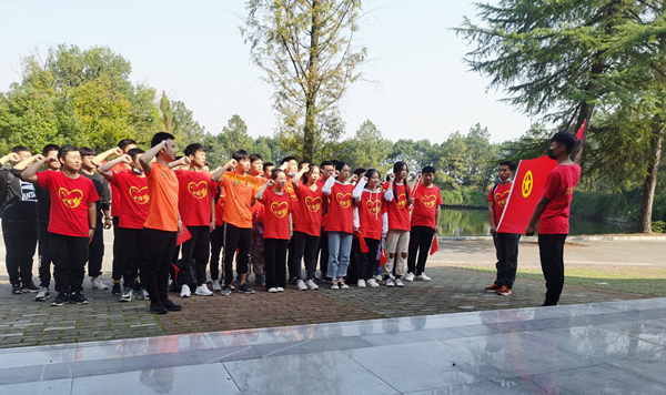 上午7时,在大别山汽车技术服务中心门口,费新宝作动员讲话。7时30分,“菁英工程”学子手持五星红旗,从学校出发,徒步21.42公里,历经4小时30分钟到达陈策楼陈潭秋纪念馆。鲜艳的红旗、整齐的步伐、响亮的口号,在秋日的暖阳中,成为秀美的巴河畔上最靓丽的风景。