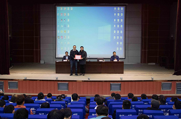 会上,刘明涛现场给张鹏颁发了客座教授聘书。随后,张鹏简单介绍了比亚迪汽车发展历程,通过视频分享了汽车的制造过程,分析了当前的就业形势,列举了多个实际案例,以通俗易懂的语言就同学们今后进入职场的角色转换、自我定位、职业生涯规划、职场需要具备的基本能力、提升自我核心竞争力等方面与同学们进行了交流。他提醒毕业生在求职前充分做好收集应聘信息、制作精炼简历、掌握面试技巧等准备,转变观念、以积极的心态应对求职。