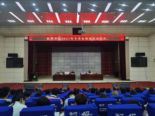 为帮助报名专升本考试的同学系统地学习专业知识及掌握考试技巧,顺利进入本科阶段继续学习深造,医药学院2021年专升本助学班于5月6日晚在学术报告厅举行了启动仪式。我院党总支书记陶志勇、院长丁海峰、党总支副书记陈胜红, 任课教师代表杨改贞副教授,以及2018级全体辅导员和助学班全体学员参与了启动仪式。启动仪式由陶志勇主持。