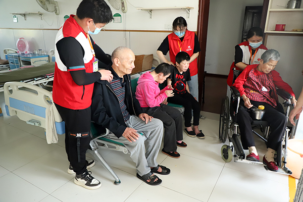 活动中,教师志愿者为福利院的老人进行血压、血糖检测,并就高血压、糖尿病、冠心病、支气管炎等慢性病的预防保健知识进行了宣讲,并指导老人和看护人员如何合理膳食、用药;学生志愿者分组为福利院老人按摩身体、整理房间、修剪指甲、卫生清扫、采摘豌豆、表演节目等志愿服务。