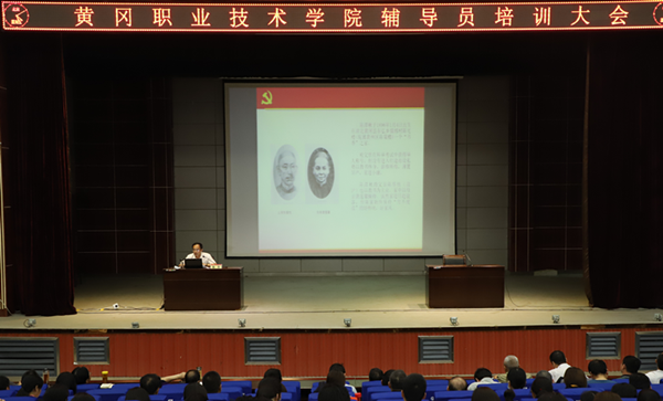 为进一步深入学习贯彻党的十九大精神,更好地从百年党史和黄冈红色文化中汲取奋力前行的智慧和力量,不断丰富学生思想政治教育的形式和内容,提升辅导员的综合职业能力。5月26日晚,黄冈市史志研究中心副主任陈军应邀在学术报告厅为beat365官网全体辅导员作专题培训。学校党委委员、工会主席、宣传部部长郑柏松,学生工作部(处)部(处)长熊楚舒,团委书记崔现强、各学院党总支副书记、全体专职兼职辅导员及近500名学生入党积极分子参加了本次培训会。会议由郑柏松主持。