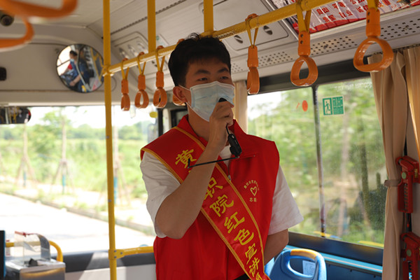 为积极贯彻习近平总书记关于党的历史的重要论述,讲好党的故事,让红色基因代代相传。在中国共产党成立一百周年之际, 学校红色宣讲团,走上公交车为市民讲解黄冈红色故事,让党史革命史深入人心。自6月份以来,学校红色宣讲团分别在5路、9路公交车上宣讲20多场,赢得了阵阵掌声和众多好评。