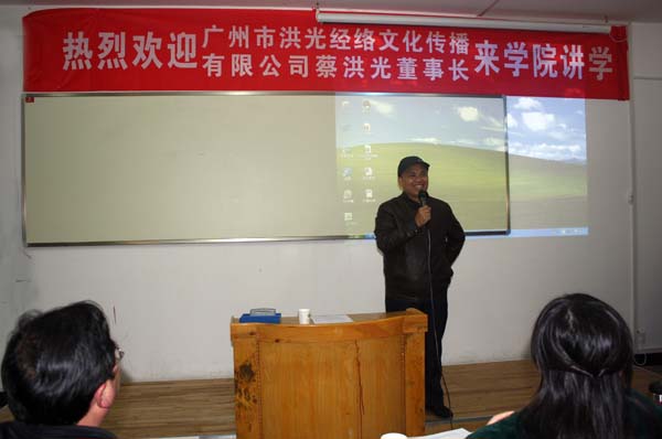 蔡洪光董事长在继承中医传统经络理论的基础上,经过潜心研究与提炼,构建了富有特色的经络康复保健文化体系,并形成了巨大的养生保健产业链,在全国设立了数百家康复养生机构,声名显赫,影响深远。在交流现场,他结合自身经历和创业体验,生动有趣地跟师生们作了一次充满人生哲理、择业与创业理念和经络文化理论的面对面交流,现场气氛热烈、高潮迭起,师生们互动积极、受益匪浅。