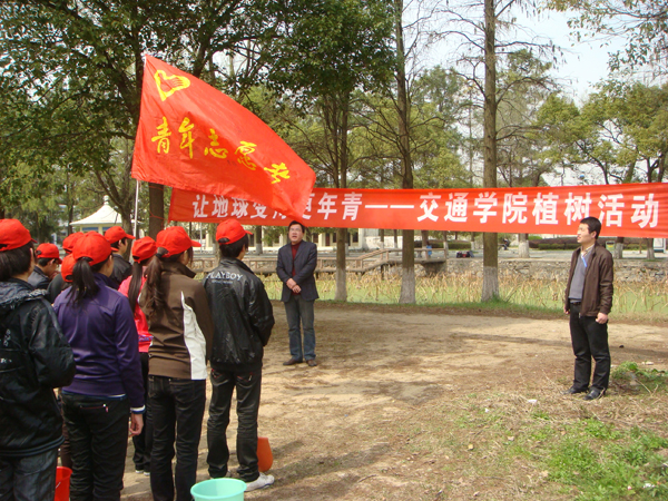 16日中午,交通学院近百名青年志愿者在学校南区科技园附近开展了植树活动。学院办公室主任程朗、团总支书记唐永明以及部分辅导员参加了这次活动。