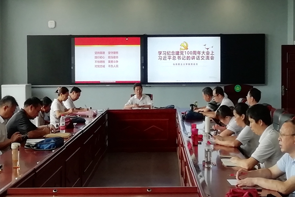 7月1日上午8时,庆祝中国共产党成立100周年大会在天安门广场隆重举行。习近平总书记发表重要讲话。马克思主义学院全体教师认真观看了庆祝大会直播,聆听了习近平总书记的重要讲话。会议结束后第一时间,学院在思政课实践教学中心召开学习习近平总书记在庆祝中国共产党成立一百周年大会上的重要讲话精神交流会。交流会由学院党总支书记、院长王政芳主持。