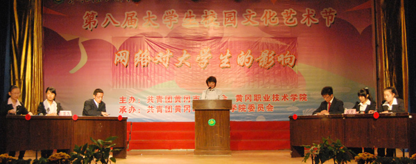 2011年11月8日晚,以“网络对大学生的影响”为主题的第八届大学生校园文化节辩论赛总决赛在大学生活动中心隆重举行。比赛特邀校友会秘书长李卫光教授、公共课部党总支书记王莹华副教授、就业与指导处何玲霞副教授、学工处杨晓燕副教授、学工处资助中心主任吕晓霞老师担任评委,学生工作处领导和各教学学院的一千余名师生到场观看了比赛。