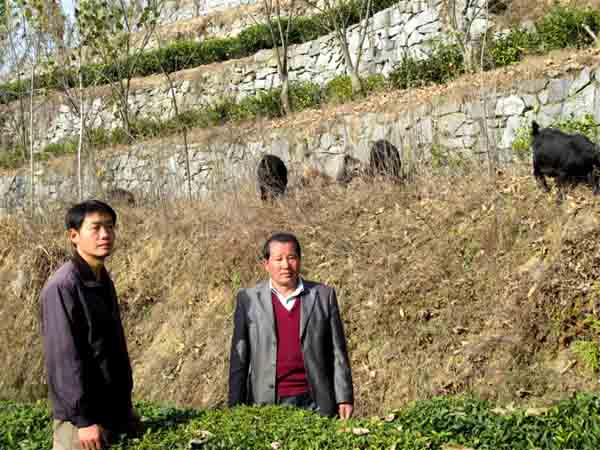 王宇和村支书(右)在牧羊的山上