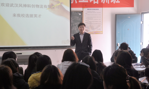 3月6日上午9:00,武汉风神科创物流有限公司总经理助理马泽琴一行五人应邀到交通学院选聘英才。交通学院党总支副书记黄忠、物流系主任王江、辅导员朱璐、全体物流专业教师及2010级近50余名学生参加了本次选聘活动。