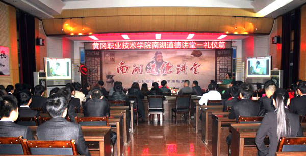 活动有看视频、讲故事、谈体会、诵经典、发倡议、唱礼歌、展礼仪、送吉祥等八个环节。首先以校园不文明现象图片及《文明礼仪看我行——校园篇》的视频引入主题,接着朱璐老师分享了关于礼仪的小故事。在谈体会环节,学生代表陈瑶、李萌等积极踊跃地发言,她们分别就校园的不文明现象、文明礼仪的养成讲述了自己的感受,品悟礼仪力量,升华自我境界。任帆老师带领大家诵读了礼仪经典,学生代表雷一鸣宣读了《大学生文明礼仪倡议书》,陈翠老师带领大家深情演唱《礼貌歌》,全体师生领悟了对礼仪的诠释和赞美,唱出了每个人的心声。在观看礼仪展示视频后,汽服班学生代表进行了礼仪场景展示。讲堂在汽服201201班学生熊杰等四人快乐和谐的快板旋律中落下帷幕。