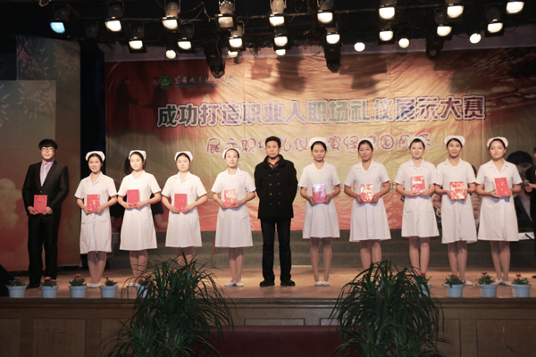 本次大赛共有生物化工学院、电子信息学院、机电学院、交通学院、建筑学院、商学院、医药卫生学院7支代表队参加,分设团队介绍、职业定位演讲、职场礼仪展示3个环节。经过选手们激烈的角逐和各团队精彩的演绎,最终,医药卫生学院、建筑学院、交通学院代表队分别获得团队一、二、三等奖,电子信息学院孙小晶同学、建筑学院吴玉伟同学、机电学院胡杰同学分别摘得个人演讲一、二、三等奖。