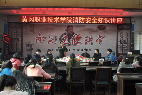 消防安全知识讲座在学校四楼中心会议室举行,学校保卫处处长邓国璋主持。消防大队特勤中队何玉涵警官讲授。黄州区消防大队副大队长周小勇,学校党委委员、工会主席郑柏松,商学院党总支书记吴祝平、副书记杨勇出席讲座。讲座以近年来全国各大高校中发生的典型火灾事故为导引,通过对典型火灾案例的分析,重点向大家阐述了火灾的危害性,围绕防火、灭火、逃生、自救四个方面,全面细致地讲解了各种消防知识、技巧、措施、方法等。参训人员对“远离火灾、珍惜生命”有了更深切的认识。