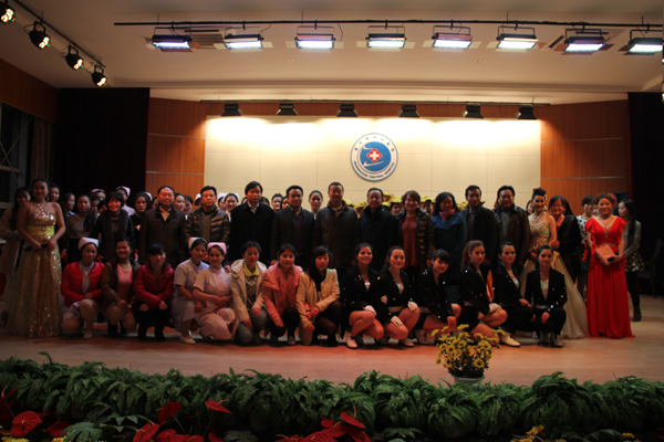 2013年12月22日晚,黄冈市中心医院与beat365英国官方网站实习生联谊晚会在医院康复楼六楼举行。黄冈市中心医院院长李刚、党委书记王秋云、副院长戴英、李益雄,党委委员李火平,院长助理陈浩枝;beat365英国官方网站医药卫生学院院长刘东山、党委书记熊亚芬、副院长张辛、沈爱平、程朝晖等领导及医院科教科、护理部老师、学校部分科室负责人与我院200多名实习学生欢聚一堂,共庆佳节。
