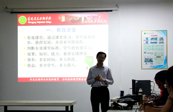 2014年10月24日晚,交通学院特邀校党委委员、教务处长夏学文教授,就“如何建设有效课堂”作专题讲座。交通学院全体教职工参加了培训会。讲座由交通学院院长张红英教授主持。