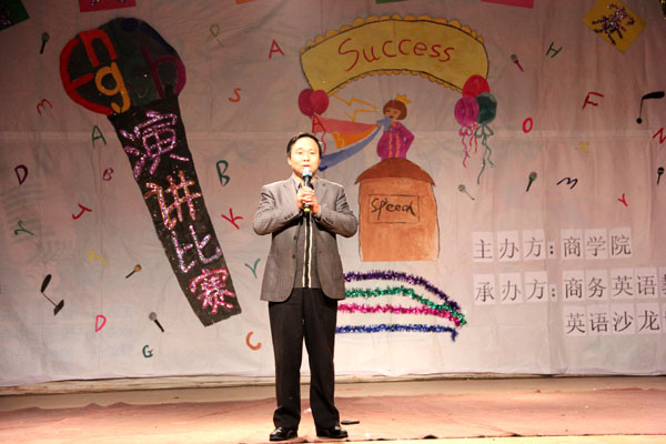比赛开始前,袁院长为比赛致辞。他肯定了英语学习的重要性,并祝愿所有参赛选手充分发挥自己的水平,充分展现自己的才华,充分享受英语学习的快乐。