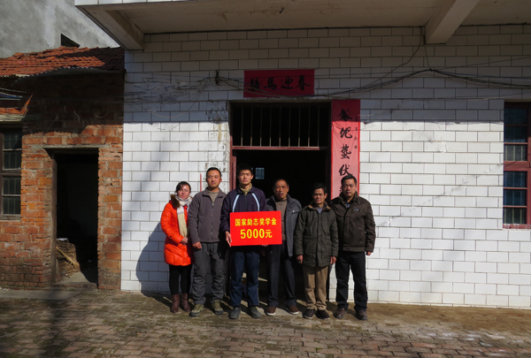 在与梅旭鸿家人及村长的一番寒暄后,走访小组送上了慰问物资及国家励志奖学金5000元。临别时,陈胜红等鼓励梅旭鸿同学要树立信心,克服困难,不辜负国家、学校和家庭的期望。