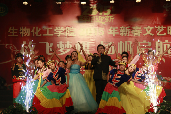 整场晚会的文艺节目从不同方面展示了生物化工学院的学院文化。舞起乐鸣,藏族歌舞等舞蹈,带给师生不一样的民族风情,节目中演员还给老师们献上了神圣的哈达,表达对老师的敬意与祝福。三个语言类节目《局长与秘书》《牛郎织女》《芝麻开门》制造了一个又一个的高潮,同学们挥动着手中的荧光棒,欢呼声和尖叫声不断。生物化工学院教师表演的时装秀更是让整场晚会达到了爆点,让同学们看到了老师不总是站在三尺讲台,手拿粉笔,还有绚丽多彩的一面。