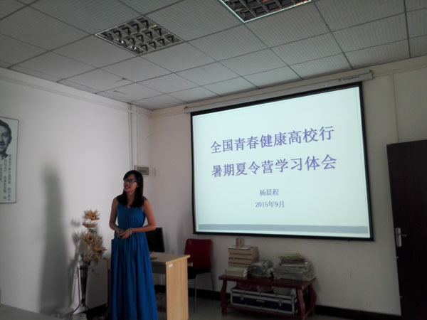 9月15日下午,心理健康教育中心组织了2015年外出参训教师和暑期社会实践教师进行了经验交流。杨晨程、姜兰、万建华等6名教师分别作了精彩发言,就大学生的身心健康现状、辅导员如何开展心理健康教育工作以及如何运用新的教育理念来管理学生进行了分享和交流。